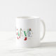 Caneca de Natal desenhada artificialmente com a palavra "Acredite"