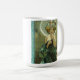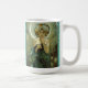 Caneca de Alphonse Mucha Clair De Lune. Pintura alegórica da litografia. Alphonse Mucha é famoso para seus propagandas e posters do nouveau da arte que caracterizam as jovens mulheres bonitas cercadas por flores e pela ornamentação intrincada. Clair de Lune ou a estrela de noite caracterizam uma jovem mulher lindo que veste um vestido estrelado. Veste flores em sua luz - cabelo marrom enquanto a lua crescente incandesce atrás dela. Um grande presente para fãs de Alphonse Mucha, de nouveau da arte, e de posteres vintage.