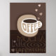 Poster delicioso para qualquer amante de café. A palavra "café" faz a forma de uma caneca e corações flutuam em torno de ondulações de mocha, latte, cappuccino, macchiato, espresso e americano.