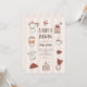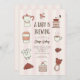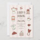 Cartão de convite para chás de fraldas de trigo com ilustração desenhada à mão de café e artigos relacionados com bebês.