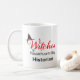 Se você é um perito na história da bruxa do século XVII caça na baía de Massachusetts, esta caneca é para você. Trabalhos para professores, professores, escritores, pesquisadores, guias turística, e estudantes da história. Caracteriza as bruxas do logotipo da baía de Massachusetts, de uma história e do Web site do viagem em www.witchesmassbay.com.