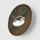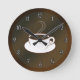 Café Copo © Sunny Mars Designs. Legal chocolate personalizado ou um relógio de parede redondo marrom, em 'café hora', com um ícone de ilustração gráfico moderno, modesto, na moda, fofo e estilizado, design de uma caneca ou xícara de café e disco.