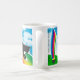 Nós estamos sobre o arco-íris com nosso MARTE Akita e filhote de cachorro e um pote do ouro nesta caneca de 11 onças.
