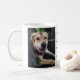 Caneca de café branco de Aclassic com 2 imagens de afortunado, um cão do salvamento do nowzad em ambos os lados da caneca.