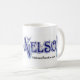 Faça-lhe um começo do rockin a seu dia! Aprecie o café ou sua bebida favorita em uma caneca branca clássica decorada com o logotipo da rocha de NELSON e o Web site de NelsonRocks.com.