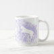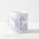 Esta clássica caneca branca foi projetada com minha representação de dois cavalos brancos pulando sobre um fundo lavanda.
