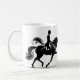 Uma caneca branca brilhante adornada com um cavaleiro de dressage e a citação “Equestre Engraçado.” É um ótimo presente para amantes de cavalos que apreciam uma boa risada1.