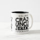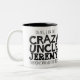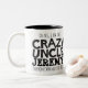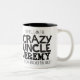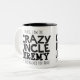 Caneca preta do slogan do texto do tio louco. Lê oh sim, eu sou o tio louco Jeremy que todos o advertiu aproximadamente. Ou personalize com seu próprio nome. Design de texto por Sarah Trett para www.mylittleeden.com no zazzle.