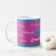 Esta caneca caracteriza a Elizabeth conhecida em incluir de 13 línguas: Inglês, espanhol, francês, sérvio, polonês, checo, escocês, hebreu, alemão, irlandês, italiano, russo, e polonês.