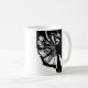 Caneca cerâmica branca que caracteriza os trabalhos de arte de Jon Ott, descrevendo um par sócios de dança do salão de baile como balançam elegante através do assoalho no desgaste fino da noite. Os trabalhos artísticos originais foram feitos usando marcadores preto e branco da pintura.