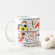 Caneca da sucessão de Kandinksy. Óleo em canvas desde 1935. O pintor Wassily Kandinsky do russo era famoso para suas formas e cores selvagens. A sucessão caracteriza uma seqüência do design abstrato com cores, padrões e dimensões múltiplos em um fundo branco. Esta pintura faz um grande presente para fãs de Kandinsky, da pintura abstrata, e da arte moderna.