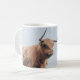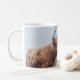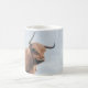 Angus a vontade da vaca das montanhas mantem um olho em sua bebida quente quando você sae da sala.