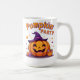 Celebre a estação assustadora com esta adorável caneca de Halloween do "Pumpkin Party"! Apresentando uma abóbora feliz e rindo vestindo um chapéu de bruxa roxa e mostrando um dente bonito e perdido, este design alegre é cheio de charme festivo. Para além da abóbora principal, há uma pequena abóbora comum, um pirulito roxo e um balde cheio de doces. À volta das abóboras flutuam pontos roxos e formas de starburst laranja, adicionando um toque mágico. Perfeito para beber café, chá ou chocolate quente neste Halloween! Faz um presente sazonal divertido para amigos, crianças, colegas de trabalho, ou qualquer um que ama vibrantes vibrações assustadoras. 🎃 💜
