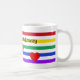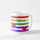 Listras coloridas e corações adornam esta "Caneca de Amor" Adicione sua escolha de nomes para torná-la especial. Ótimo presente para o dia dos namorados, aniversário ou qualquer dia especial para qualquer idade.