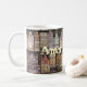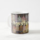 Agrida com inscrição de "Amsterdão" em uma imagem das casas holandesas famosas do canal em colores brincalhão. Esta é uma grande lembrança holandesa para seu amigo em casa ou um presente perfeito para sua família. Personalize esta caneca com seus próprios estilo e texto pessoal como você gosta!