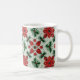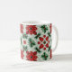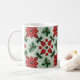 Isto é uma caneca. Uma forma pequena e fofa, uma caneca quente, vermelha verde com uma sensação de Natal harmoniosa.