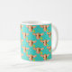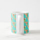 Esta adorável caneca de vaca turquesa apresenta cabeças de bezerros fofos segurando uma flor amarela. Perfeita para quem ama vacas, animais de fazenda ou desenhos divertidos de bezerros.