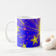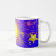 Um fogo de artifício explodindo em um chá de ouro e estrelas cor-de-rosa deslumbrantes contra um céu azul. Mug com um design personalizável amarelo, rosa, azul e branco para você personalizar com seu próprio texto, imagens e ideias. Disponível em todas as opções de estilo. Criado com fotografias originais e técnicas digitais por Jess Perry.