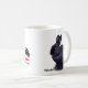 Uma caneca com o nome e o logotipo de BunnyLuv em um lado e no outro uma imagem da Ophelia muito amigável, que tem sempre o tempo para alguém que pets a.