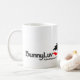 Uma caneca com o nome e o logotipo de BunnyLuv em um lado e no outro uma imagem da harlequin-mistura bonita Spookie, que ama jogar e explorar.