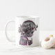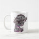 Essa caneca cerâmica ilustra uma menina, capturada num momento de pensamento silencioso e charme.