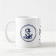 Bonita âncora e símbolo de roda da nave, caneca azul e branca no estilo marítimo - se preferir, você pode personalizar o modelo personalizado "Capitão" para seu nome, por exemplo.