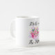 Esta caneca de cerâmica é mostrada com uma linda impressão de buquê floral e texto que diz Mãe da Noiva. Personalize este item ou compre como está. Imagem de estoque