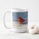 Cardeal sertanejo em ponte de madeira, faz um começo alegre ao dia! A caneca Cardinal está disponível em vários tamanhos, estilos, incluindo caneca de viagem.