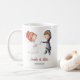Linda caneca de casamento com uma ilustração de noivos dançando. Personalize o texto com suas próprias informações. Clique em personalizar mais se necessário. Ilustrado e desenhado por Patricia Alvarez.