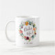 Um presente elegante para as melhores damas, uma caneca com uma grinalda floral em aquarela em uma paleta deslumbrante de borgonha, dourado, coral, rosa e verdes folhosos com "dama de honra" inscrito em letra manuscrita. Personalize com a data do seu casamento abaixo. Projetada para combinar com nossa coleção floral borgonha Paprika.