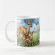 Café Caneca de cervo fêmea de pé em flores silvestres