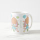 Uma caneca de Páscoa fofa para crianças com um coelho caprichoso , alguns corações e flores pequenas . Personalize-a com um nome .