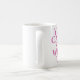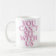 Você da menina média "não pode sentar connosco" citações na caneca no rosa no design branco.