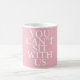 Você da menina média "não pode sentar connosco" citações na caneca no branco no design cor-de-rosa.