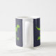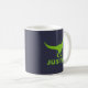 A caneca personalizada de dinossauro T Rex personalizada com o nome das crianças. Bela ideia de aniversário ou de presente de Natal para meninos e meninas. Design verde pré-histórico do Tyrannosaurus rex com fundo de cor personalizável. É azul. Abastecimento pessoal de trex selvagem para crianças. Presentes legal e engraçados para o jardim de infância, escola gramatical, crianças do ensino fundamental. Faça o seu próprio para filho, neto, neto, sobrinho etc. design de bebendo de de dinassauro duplo.