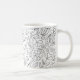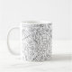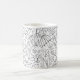 Flores pretas, simples, esboçadas, como giz, e deixa cobrir uma caneca branca.