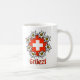 Os edelweiss estilizados cercam uma bandeira suíça com o cumprimento suíço amigável abaixo.