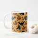 Esta é uma caneca para o Halloween. Ele tem um design de na moda que combina laranja e preto. Tenha um feliz Dia das Bruxas.