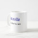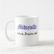 Uma caneca que caracteriza o feiticeiro azul Marvin e o logotipo de Midieville