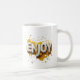 Mel Drop Splash Mug O design deslumbrante na frente, mostrando uma gota magnífica de mel fluindo verticalmente do topo, criando um efeito splash encantador, mesmeriza sua visão toda vez. Vire a caneca e se inspire pela nossa mensagem elevadora "Aproveite". O design de texto artístico destaca a alegria simples, mas profunda, encontrada no saborear os pequenos prazeres da vida. Esta mensagem ressoa àqueles que apreciam práticas de mentalidade e momentos valiosos de alegria privada. Quer você goste de aquecer chás, revigorar cafés, ou chocolate quente rico, nossa Mel Drop Splash Mug é uma escolha versátil. Nutria seu dia com alegria