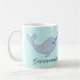 Cada lado tem um narwhal bonito com um chifre e os pontos do arco-íris. "Tudo baleia seja aprovação" é envolvida em torno da caneca.