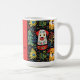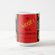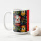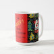 Cães pequenos decoram esta caneca de Natal dogamente fofa num adorável padrão de Yuletide. Os cães dizem "Nós Te Acolhemos Um Feliz Natal" para seus amantes amigos e familiares. O design é da arte brilhante do fauvismo com um toque de inspiração popular. O fundo preto enfatiza as cores festivas. Árvores de Natal, verde e bagas divertidas, folhas e outros adornos da época de inverno preenchem o padrão. O texto preto e amarelo é apoiado por um belo vermelho de feriado. Todo o texto pode ser alterado. Certifique-se de editar o nome da família de exemplos e o ano.