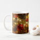 Mágica caneca de Natal com bolhas vermelhas e ouros de Natal, brilhantes, tonalidades brilhantes e ramos de árvores de Natal. Presente perfeito para a família e os amigos.