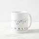 Halima soletrou em aminoácidos como H A L I M A (Histidina Alanina Leucina, Isoleucina Metionina Alanina) numa caneca para o cientista em si.