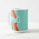 Bom dia para Pai com este retro design. Listras coloridas vibrantes e um estilo de ranho trazem um toque de sol para sua respiração matinal. Texto: "Pai"