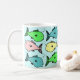 Peixe colorido decora caneca. Cartoons de peixe tropical. Designs de peixe brilhantes e divertidos. Padrão de peixe no estilo de desenho animado. Presente para um proprietário de aquário - um detentor de peixes que talvez tenha um aquário ou um lago de peixe.