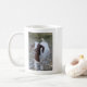 Esta foto de riso da cabra em uma caneca branca mostra que as cabras amam ter o divertimento! Que maneira do divertimento de começar seu dia com esse primeiro copo de Joe!