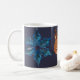 Bebê Rudolph com um fundo azul, com as duas estrelas azuis em ambos os lados dele.