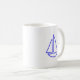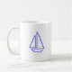 Uma linha azul de solteiro põe a vela nesta caneca branca brilhante.