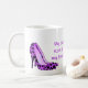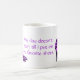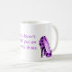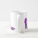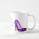 Caneca de café do divertimento com os gráficos dos saltos altos roxos e pretos do estilete do teste padrão da pele do jaguar. O texto roxo, no meio lê meu dia não começa até mim pôr sobre meus calçados favoritos. Personalize o texto para ler qualquer coisa que você quer. As grandes senhoras agridem para a casa ou o escritório.